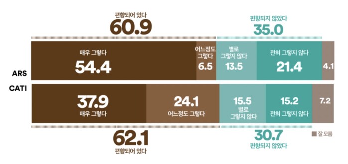 ▲검찰 수사의 정치정 편향성 (단위 %, 출처=여론조사 꽃) |