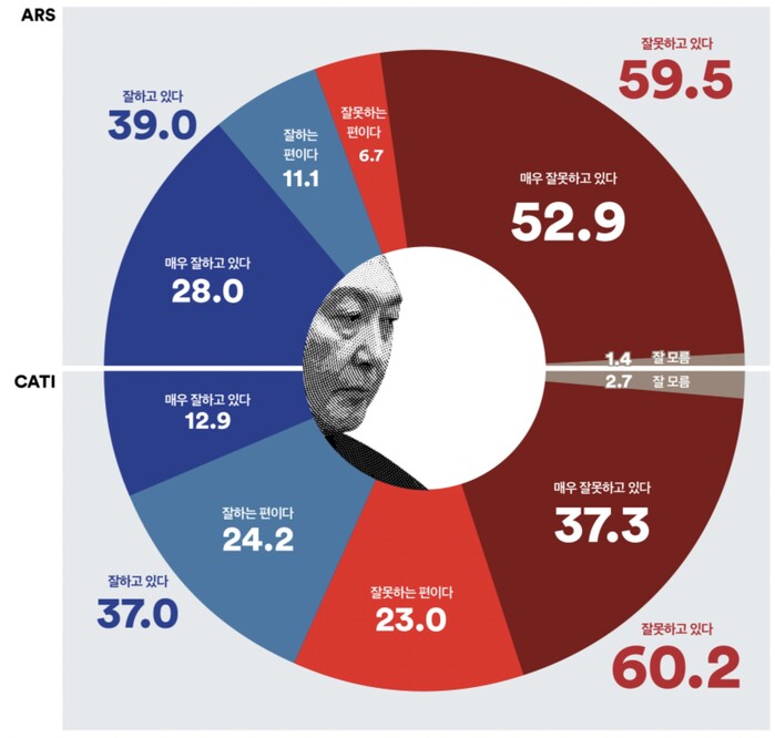 | ▲윤 대통령 국정운영평가 (단위 %, 출처=여론조사 꽃) |