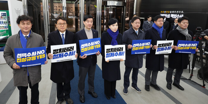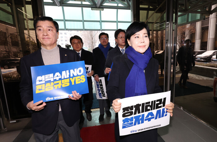 대책위원장인 전현희 전 국민권익위원장과 위원인 강병원·박상혁·이해식·황운하 의원 및 당 영입 인재인 류삼영 전 총경 등은 면담에 앞서 국수본 앞에서 '정치테러 철저 수사' 등의 문구가 적힌 손팻말을 들고 항의 시위도 했다.