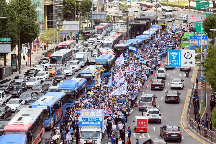 행사 참석자들은 광화문을 출발, 용산으로 행진하여 대통령실 앞에서 규탄 대회를 열었다.
