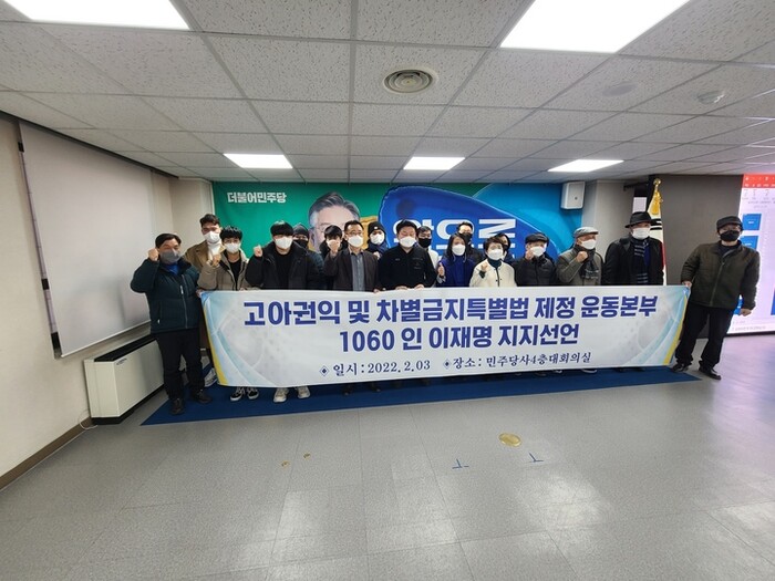 시민단체들의 더불어민주당 이재명 후보에 대한 지지가 이어지는 가운데 '고아인권 및 차별금지 특별법 추진운동본부(이하 운동본부)'에서도 이 후보에 대한 지지선언에 동참했다.