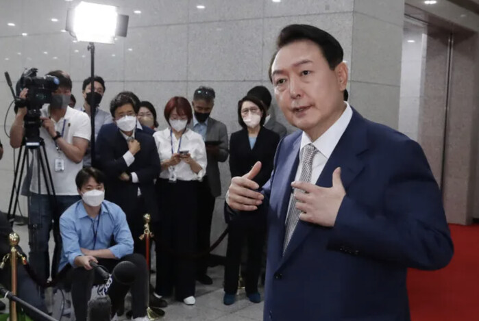 | ▲윤 대통령의 도어스테핑 모습 (사진=연합뉴스) |