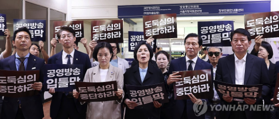 민주당과 조국혁신당은 이날 오전 공영방송 이사진 선임 절차에 돌입한 방통위를 항의 방문했지만, 건물 안으로 들어가지 못했다.