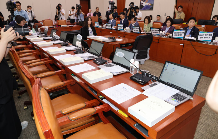 새만금 세계스카우트 잼버리 사태와 관련한 현안 질의가 예정됐던 국회 여성가족위원회 전체회의가 여당 의원들과 김현숙 여성가족부 장관 불참으로 파행했다.