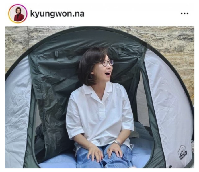 | ▲ 나경원 국민의힘 의원이 인스타그램에 올린 국회 숙식 농성 모습. 온라인 커뮤니티 갈무리 |