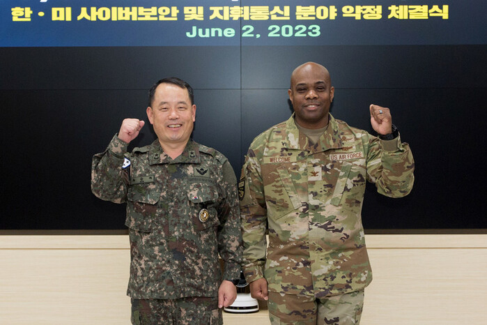 2일 류승하 합동참모본부 지휘통신부장(육군준장)과 에릭 웰컴 주한미군사령부 통신전자참모부장(대령)는 합동참모본부 청사에서 만나 합의각서에 서명했다.