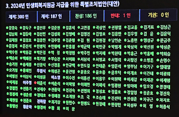 | ▲25만원법 투표 결과 화면 (사진=연합뉴스) |
