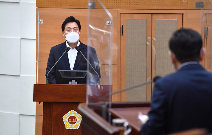 | ▲서울시의회 출석한 오세훈 시장 (사진=연합뉴스) |