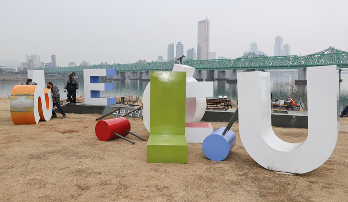 | ▲아이서울유 조형물을 철거중인 모습 (사진=연합뉴스) |