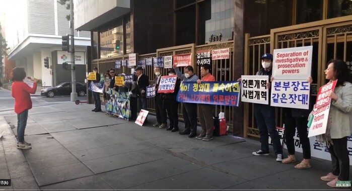 | ▲ 청와대 졸속이전과 언론개혁 사법개혁 피킷을 든 한인들 |