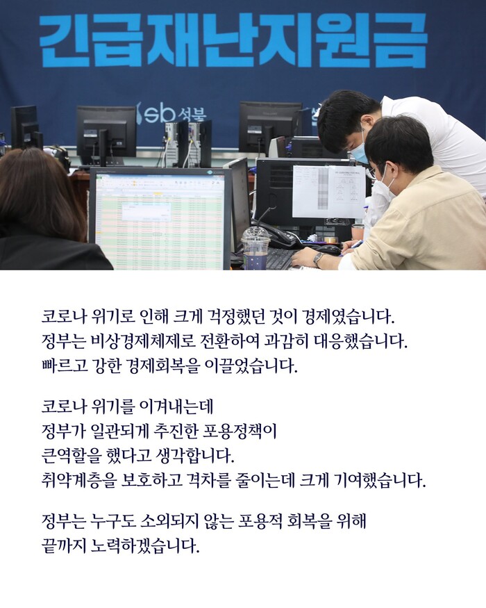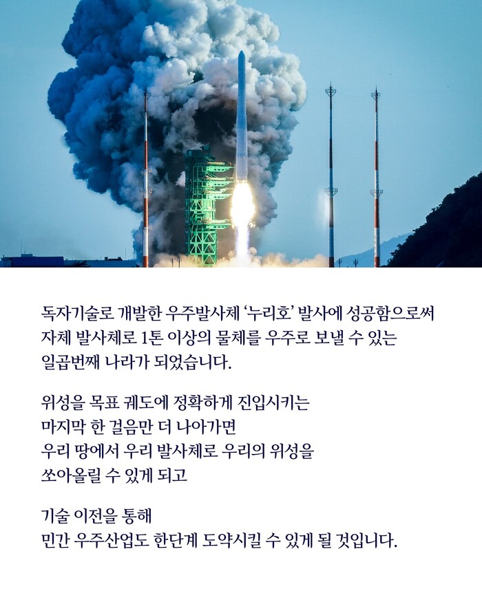 -긴급재난지원금으로 취약계층 보호 격차줄임.메모리 반도체1위.누리호발사.