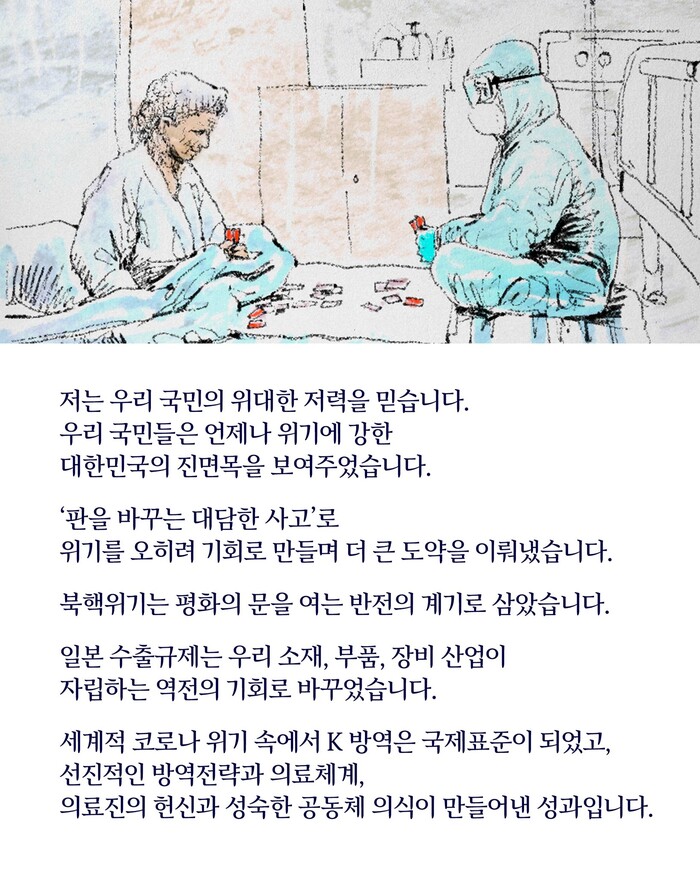 -북핵위기 평화의문 여는 반전의계기, 코로나위기속 k방역 국제표준,의료진 헌신속 성과.