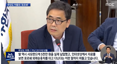 10일 MBC는 <“포르쉐 탄 건 곽상도 아들”.. ‘이중잣대’ 논란>이란 제목의 리포트를 통해 “곽상도 의원은 과거 조국 전 장관의 딸이 포르쉐를 탄다는 근거 없는 소문을 토대로 공세를 편 적이 있다”며 “정작 포르쉐는 자신의 아들이 타고 있었다”고 꼬집었다.