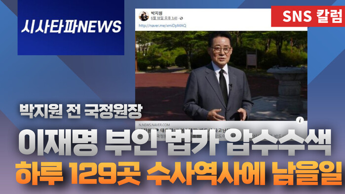 박 전 원장은 "경찰 권한이, 수사 영역이 너무 광범위해졌다. 이게 적당한 지적이 될지 모르지만 이재명 의원 부인 법카(법인카드) 문제에 대해 하루에 경찰에서 129곳을 압수수색을 했더라"라며 "우리 수사 역사에 남을 일일 것"이라며 비판했다.
