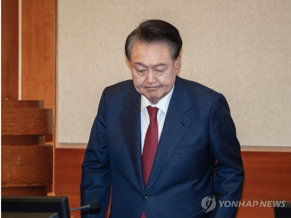 윤석열이 탄핵심판 변론에 출석했다가 4분 만에 돌아갔다.