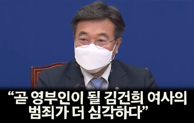 "곧 영부인이 될 김건희 여사를 둘러싼 범죄·비리 의혹을 규명하는 문제가 시급하다"라고 말했다.
