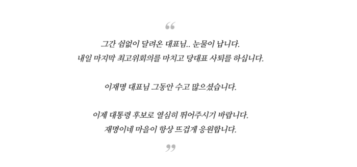 | ▲ 민주당 지지자들의 감사 인사 (출처=재명이네마을) |