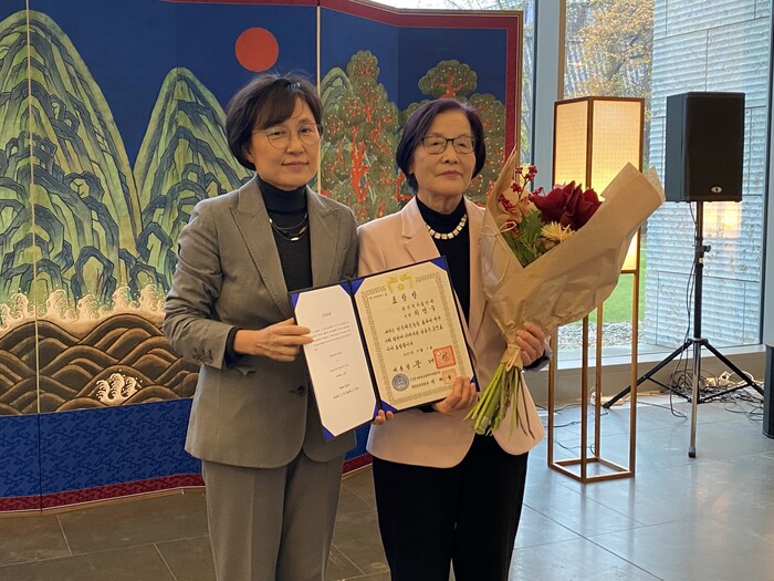 | ▲ 표창장 수상 최영숙님. "조국의 민주화와 평화통일을 위해 함께 투쟁해온 동지들이 받는 상" |