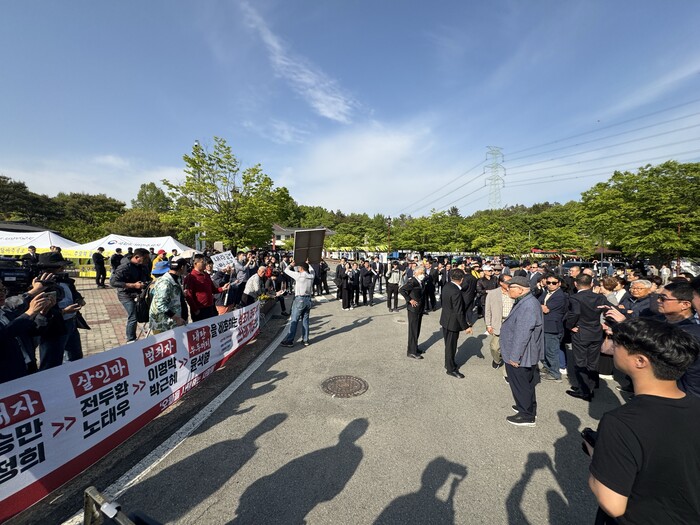 | ▲ 2일 광주 5·18 민주묘지서 기자회견하는 시민·사회 단체 (사진=시사타파뉴스 최명훈 기자) |