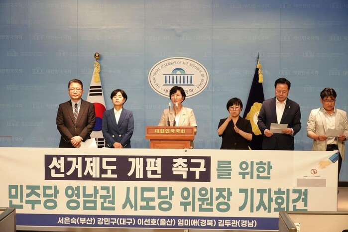 더불어민주당 영남권 시도당 위원장들은 "권역별 비례대표제를 도입하고 선거법과 정당법, 정치자급법 개정을 서둘러야 한다"고 주장했다.