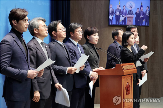 | ▲ 25일 더불어민주당 전현희 의원 등 사법정의실현 및 검찰독재대책위원회 소속 의원들이 이재명 대표의 무죄를 주장하는 기자회견을 하고 있다. (사진=연합뉴스) |