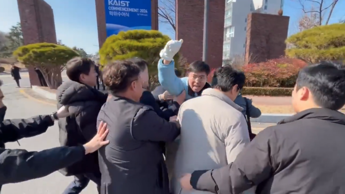 대전 한국과학기술원의 16일 학위 수여식에서 윤석열 대통령을 향해 소리를 지른 한 졸업생이 대통령경호처 요원들에 의해 강제로 퇴장당했다.