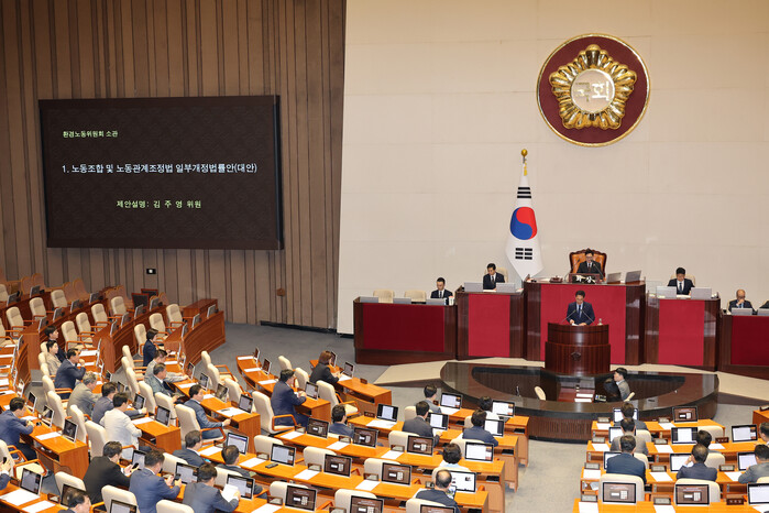 | ▲ 23일 서울 여의도 국회 본회의에서 노란봉투법(노동조합 및 노동관계조정법 일부개정법률안)이 상정, 더불어민주당 김주영 의원이 제안설명하고 있다. 2025.8.23 (사진=연합뉴스) |