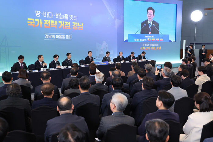 | ▲ 이재명 대통령이 6일 창원 성산구 창원컨벤션센터에서 열린 '경남의 마음을 듣다' 타운홀미팅 간담회에서 발언하고 있다. 2026.2.6 (사진=연합뉴스) |