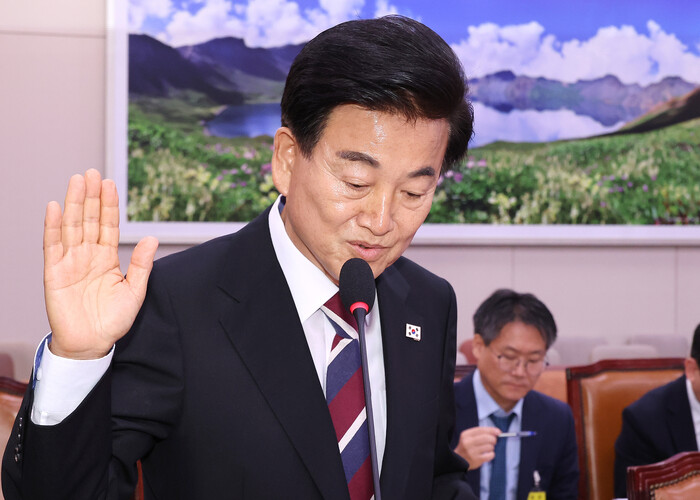 | ▲ 정동영 통일부 장관 후보자가 국회 외교통일위원회에서 열린 인사청문회에 출석해 선서하고 있다. 2025.7.14 (사진=연합뉴스) |