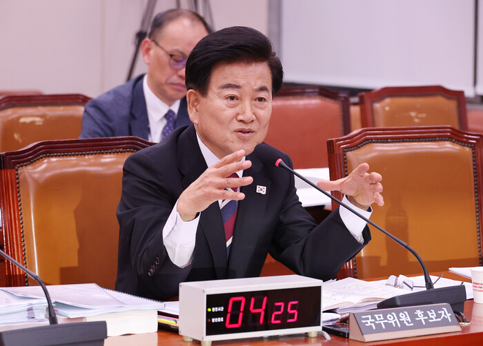 | ▲ 정동영 통일부 장관 후보자가 국회 외교통일위원회에서 열린 인사청문회에 출석해 의원 질의에 답변하고 있다. 2025.7.14 (사진=연합뉴스) |