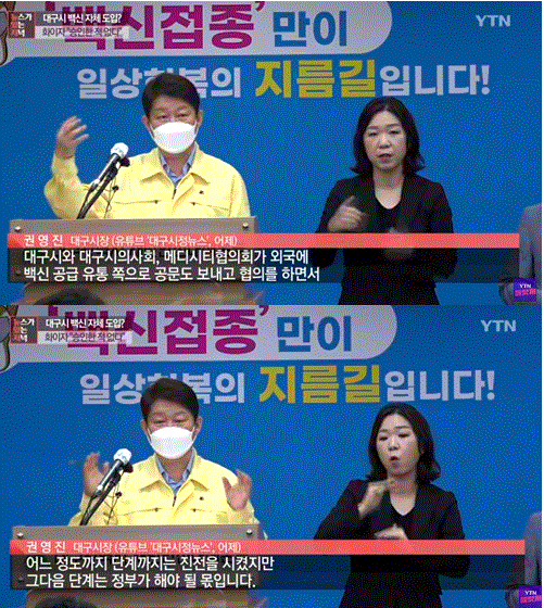 송 기자는 “세계 각국이 백신 확보 경쟁을 벌이고 있는 상황인데, 권영진 대구시장은 10만 명 분량도 아니고 55만 분량도 아니고 무려 3천만명 분량을 3주 안에 도입할 수 있게 됐고 정부의 승인만 남았다며 마치 남들은 하지 못한 쾌거를 이루어낸 것처럼 기자회견까지 열어 직접 발표했다”는 점을 꼬집었다.