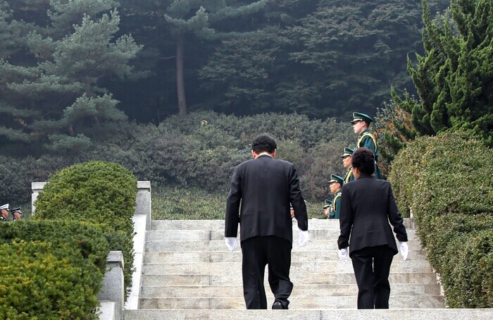 | ▲박정희 묘소 참배하러 가는 윤 대통령과 박근혜 (사진=연합뉴스) |