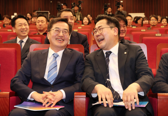 | ▲ 18일 국회 도서관에서 김동연 경기도지사와 박찬대 더불어민주당 원내대표 (사진=연합뉴스) |