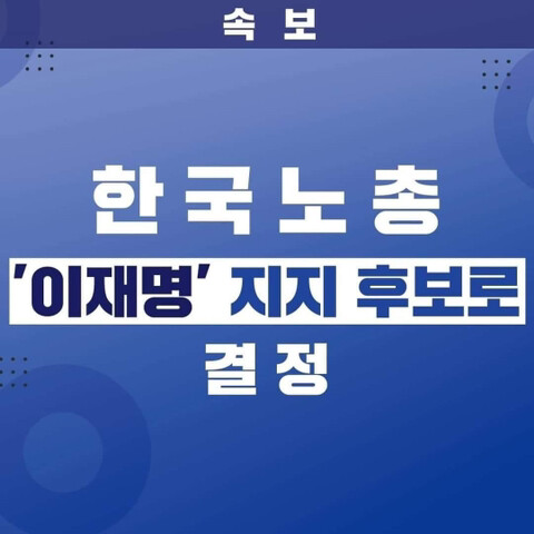 한국노총이 20대 대선에서 "이재명 더불어민주당 후보" 를 지지하기로 결정했다. 한국노총은 조합원 140만 명이다.