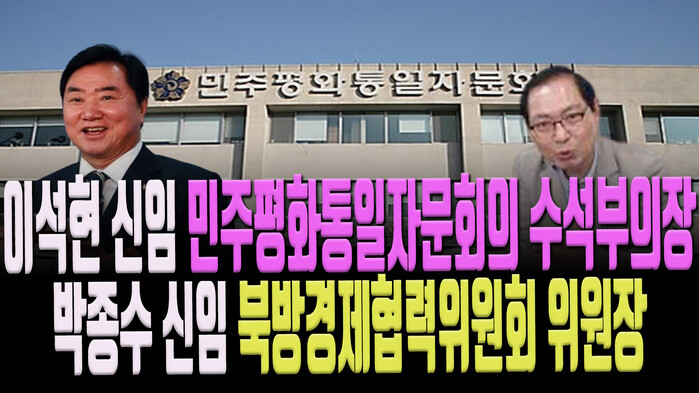 문재인 대통령은 오늘 민주평화통일자문회의 수석부의장에 이석현 前 국회 부의장을 내정하고, 북방경제협력위원회 위원장으로 박종수 동북아공동체문화재단 상임대표를 위촉했습니다.