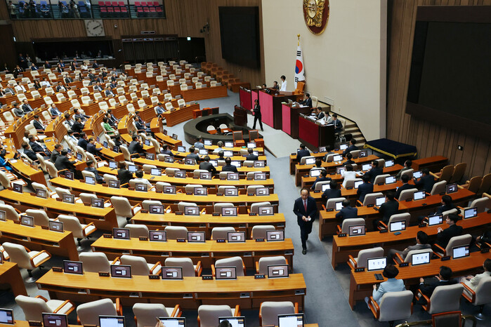 | ▲국회 본회의장. 여당 의원들은 참석하지 않았다(사진=연합뉴스) |