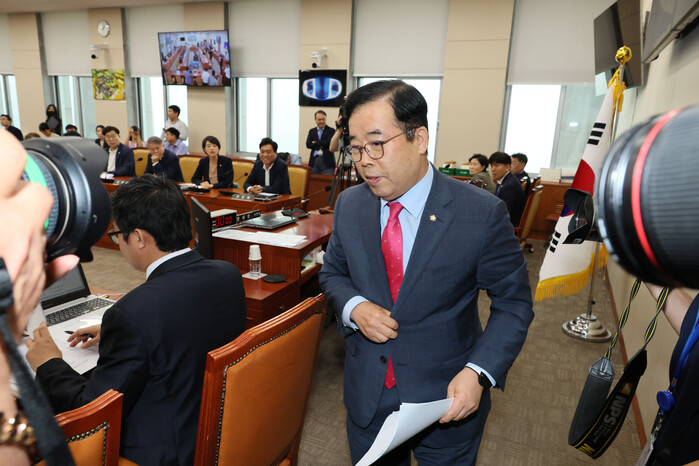 박 의원은 "민주당이 일방적으로 간사 간 협의 없이 계속 (전체회의를) 잡는 게 모양이 좋지 않아 보인다"며 "간사 간 협의로 법안이 통과되면 언제든지 합의해 전체회의를 열 수 있다"고 한 뒤 1분 30여초 만에 산회를 선포했다.