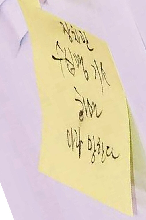 김진욱 공수처장의 답변 내용은 특별할 것이 없었지만 그의 답변 자료에 붙어 있는 손글씨 메모가 화제에 올랐다.