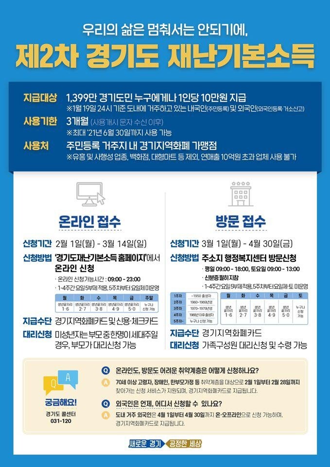 경기도는 지난해 4월과 올해 2월 두 차례에 걸쳐 모든 경기도민을 대상으로 1인당 10만 원씩 재난기본소득을 지급한 바 있다.