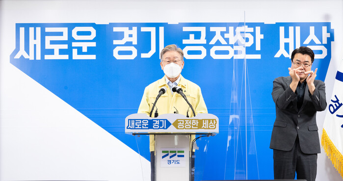 | ▲13일 경기도청에서 기자회견을 열고 “경기도는 재난지원금 보편지급의 당위성과 경제적 효과를 고려해 정부 5차 재난지원금 지급대상에서 제외된 분들을 포함해 모든 도민들께 제3차 경기도 재난기본소득을 지급하고자 한다”고 말했다. ⓒ 경기도청 |