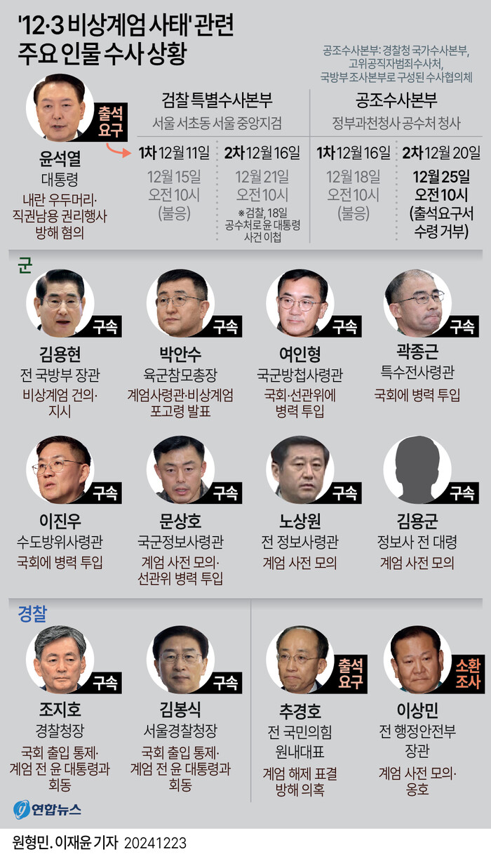 | ▲ '12·3 비상계엄 사태' 관련 주요 인물 수사 상황 윤석열, 고위공직자범죄수사처의 2차 출석요구서 우편물 수령 거부 |