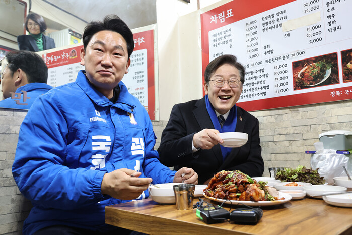 | ▲곽상언 후보와 함께 한 이재명 대표 ( 사진=연합뉴스) |