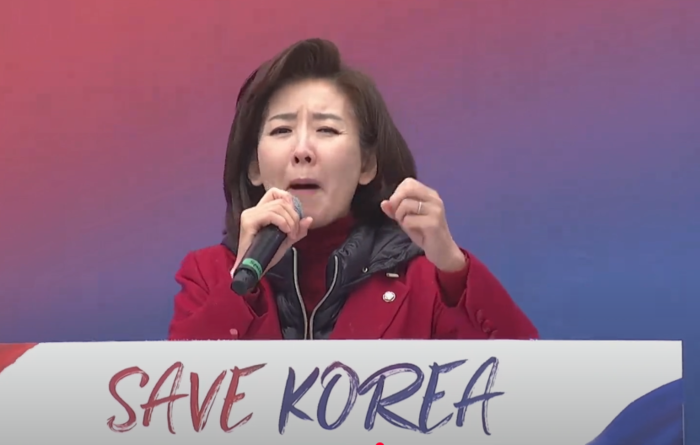 | ▲ 1일 여의도 탄핵 반대 집회에서 연설한 나경원 국민의힘 의원 (출처=유튜브) |