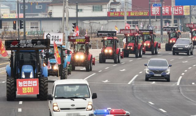 | ▲ 21일 트랙터 행진하는 전농 (사진=연합뉴스) |
