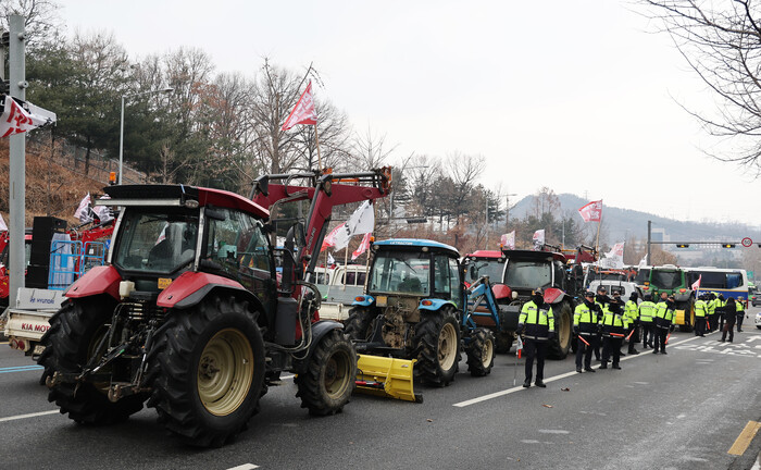 전농과 경찰 등에 따르면 전농 소속 트랙터 30여대와 화물차 50여대는 21일 정오께 과천대로를 통해 서울로 진입하려다 서초구 남태령고개 인근에서 경찰과 마찰을 빚었다. 이 중 트랙터 3∼4대는 현재 서울에 들어온 것으로 알려졌다.