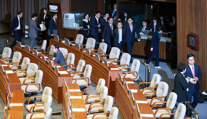 | ▲필리버스터 철회 후 본회의장 떠나는 국민의힘 의원들 (사진=연합뉴스) |