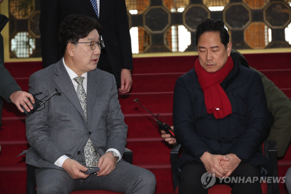| ▲ 마은혁 헌법재판관 임명에 반대하며 단식농성을 하고 있는 국민의힘 박수영 의원을 찾은 권성동 원내대표. 2025.3.6 (사진=연합뉴스) |