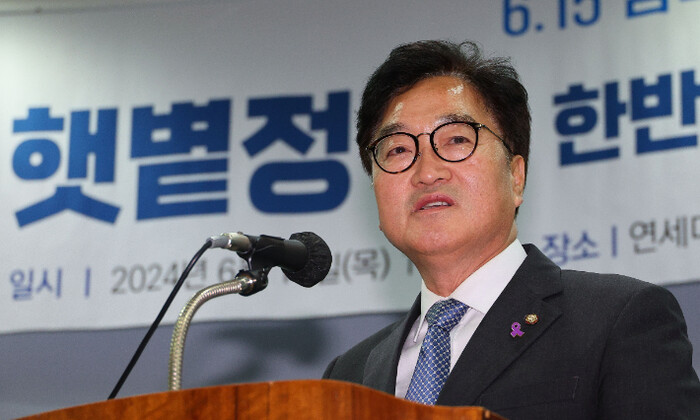 우 의장은 13일 서울 서대문구 연세대학교에서 열린 6·15 남북정상회담 24주년 기념식 축사에서 "대화가 무슨 소용이며 가능하기나 하느냐는 목소리도 있는데, 그러면 대화 말고 무슨 방안이 있다는 말인가"라며 "긴장을 낮추려면 대화로 방향을 틀어야 한다"고 말했다.