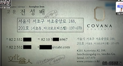 -건진법사 전씨 코바나컨텐츠 고문 활동한 명함을 제보자로부터 받았다.