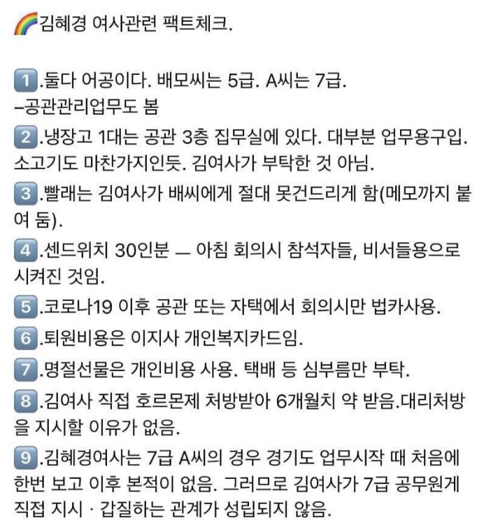 (첨부)김혜경여사는 8급직원 A씨를 처음 한번 빼고 본적이 없다. 빨래에 대해서는 한번도 누군가를 시킨적이 없고, 김혜경 여사님이 절대 빨래 해주지 말라고 메모까지 했음. |